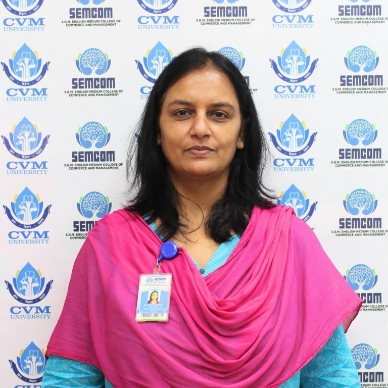 Ms. Sarvi Dineshkumar PatelQualification: B TECH,MBA,UGC(NET) Designation: Assistant Professor Area: Commerce Management